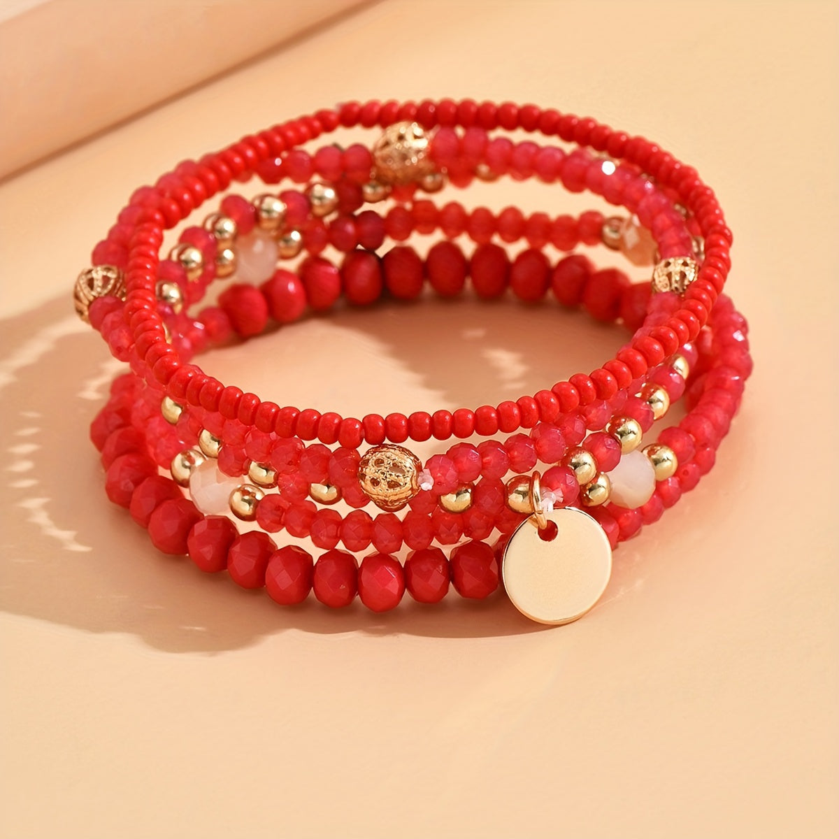 Set of Five Minimalist Round Pendant Bead Bracelets